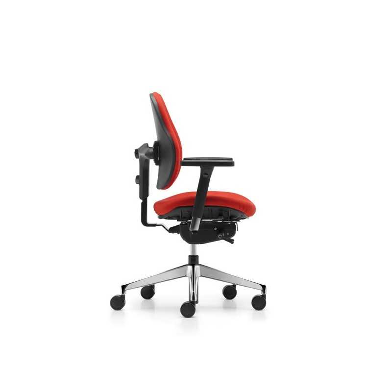 Chaise pivotante unique avec hauteur et dossier réglable en fonction de la largeur de la colonne vertébrale permettant de soulager jusqu'à 50% les douleurs dorsales liées à la position de travail. Double action, dossier flexibles soutenant les mouvements de travail naturels et soutenant le corps en douceur. Les physiothérapeutes, les orthopédistes et les régimes d'assurance-maladie préconisent un environnement de travail où aucune pressions sur la colonne vertébrale ne doit venir troubler la parfaite réalisation de celui-ci.